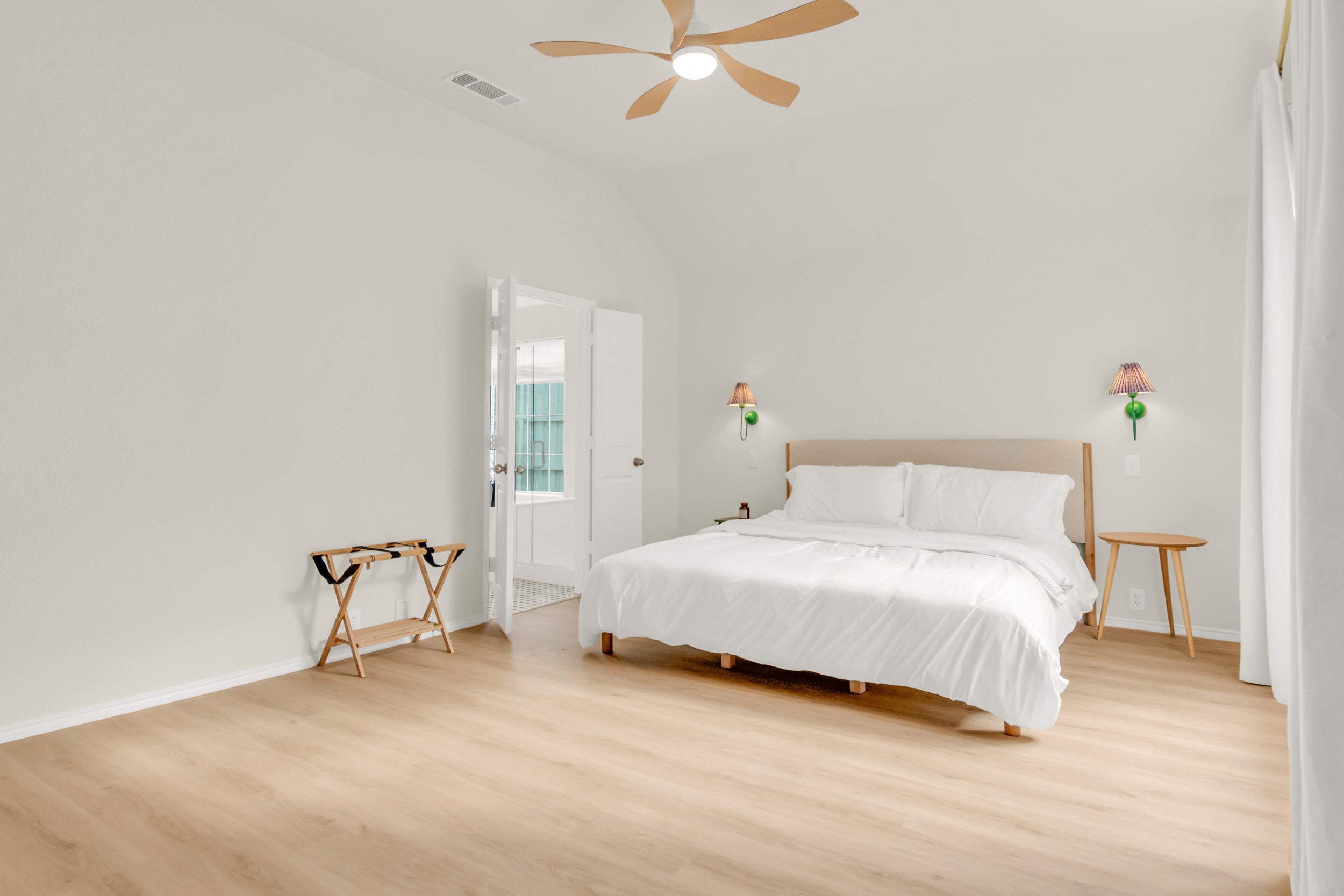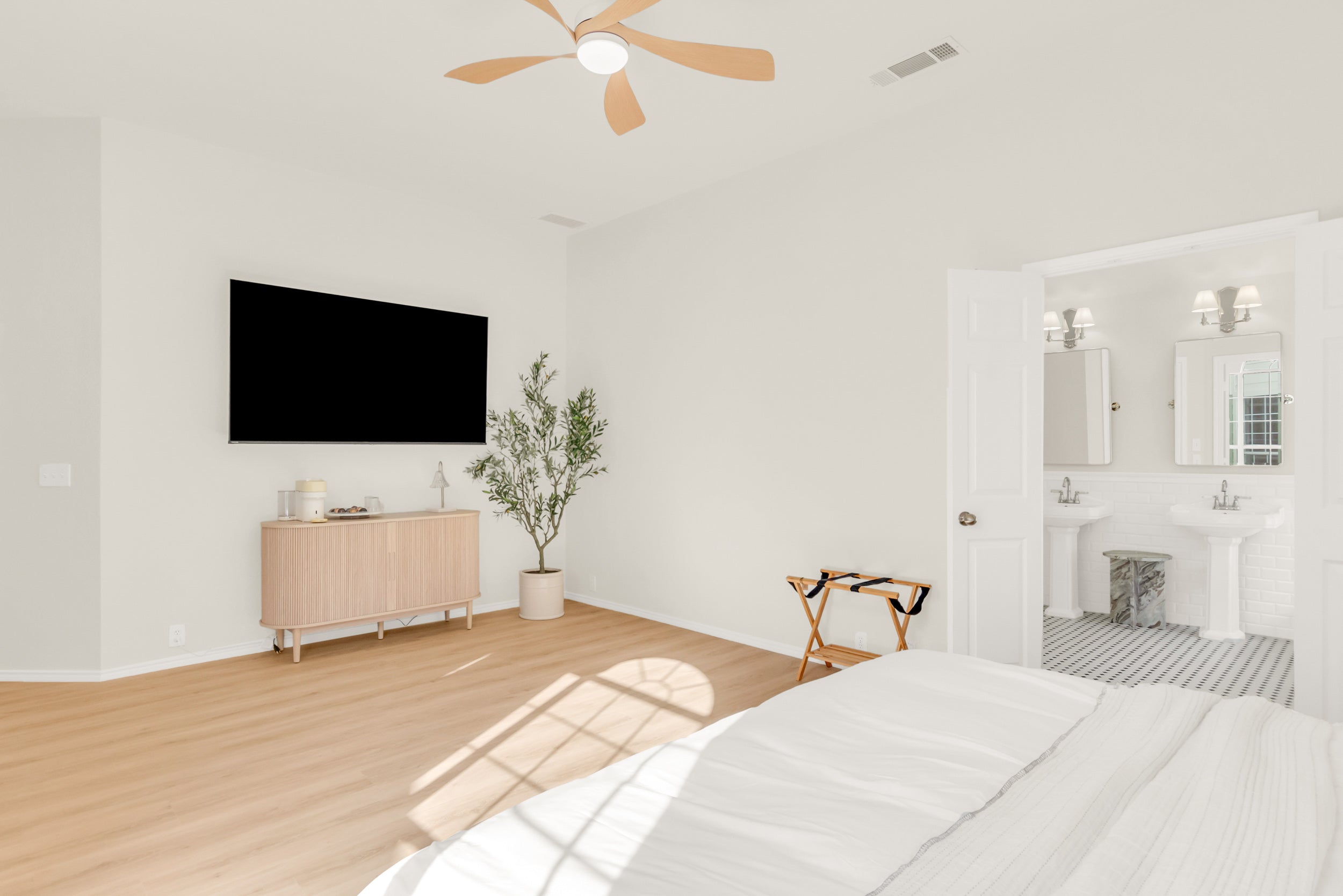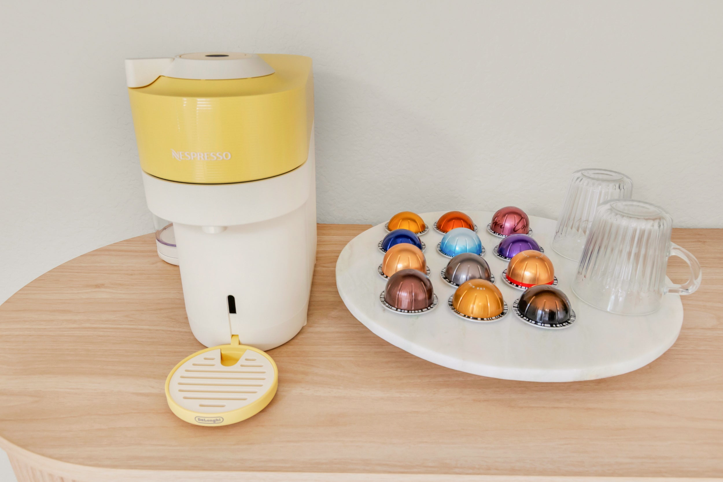 A serene retreat with a luxury king bed , private master bathroom, Nespresso bar and tv.