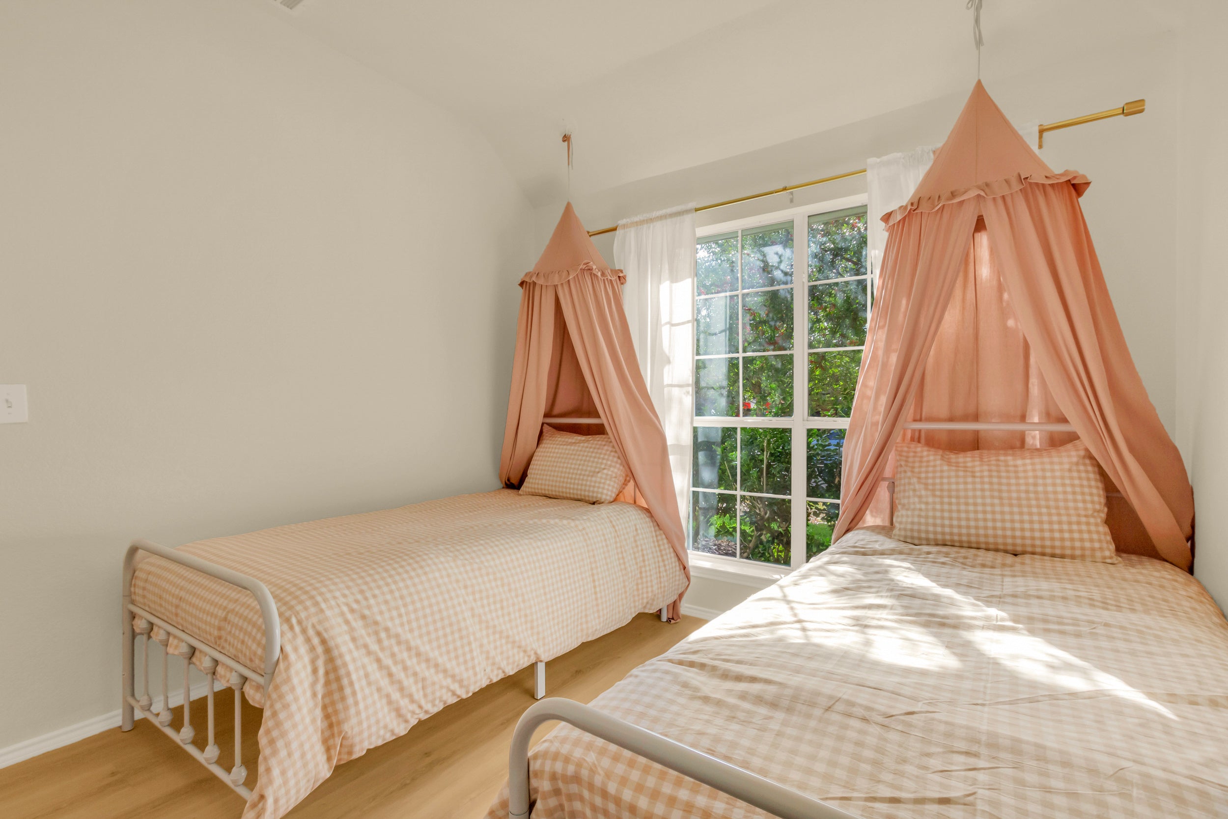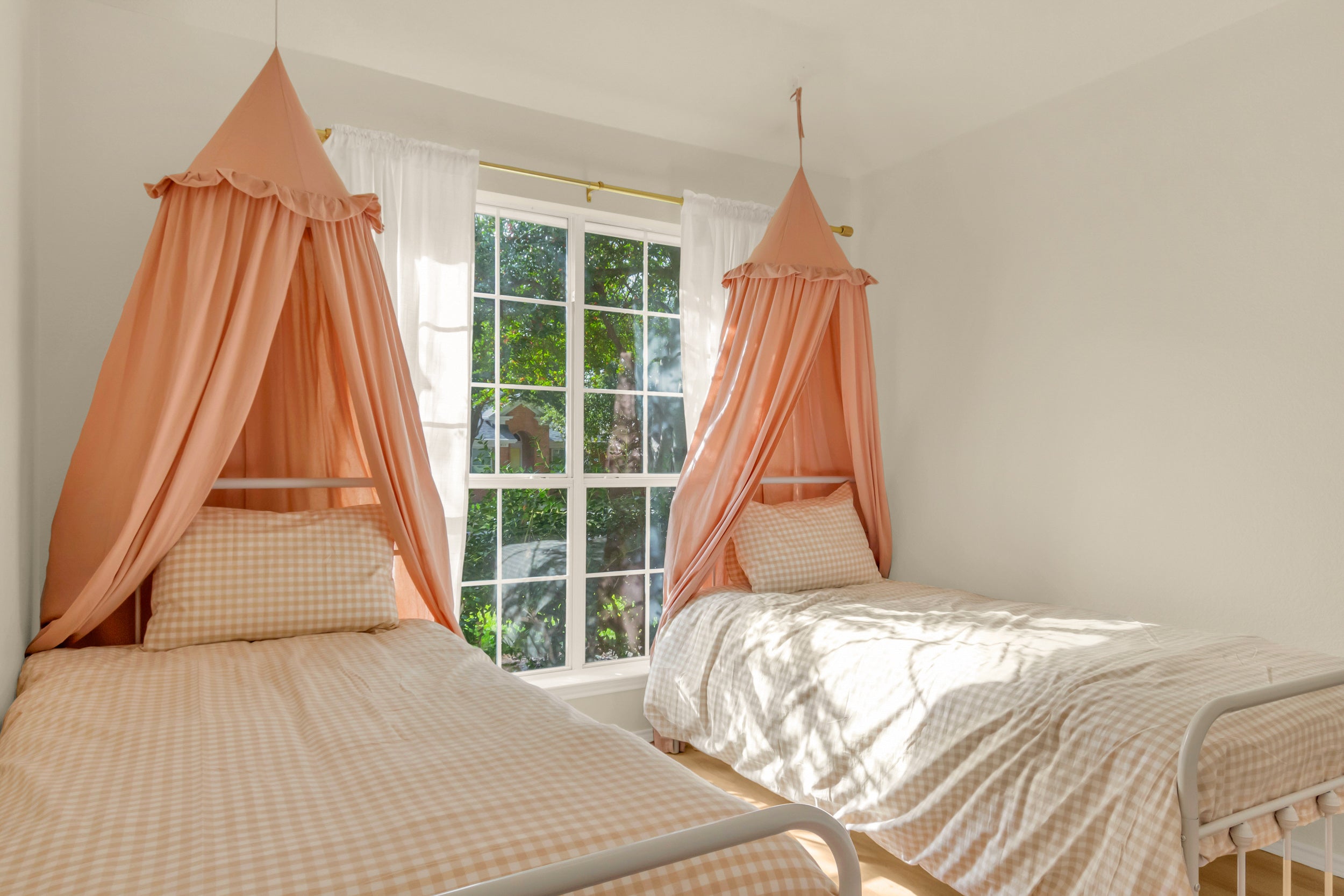 Charming room featuring two twin canopy beds, perfect for children or extra guests.